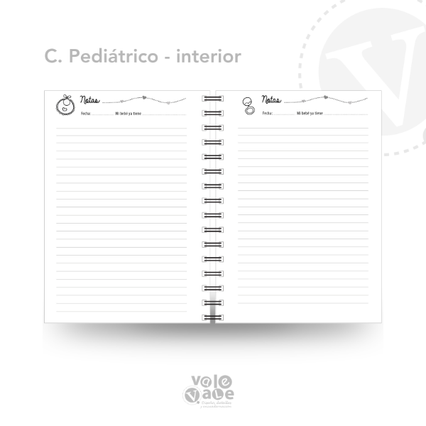 Cuaderno Pediátrico de tapas duras de 15 x 21 cm con cierre elástico y laminado mate.